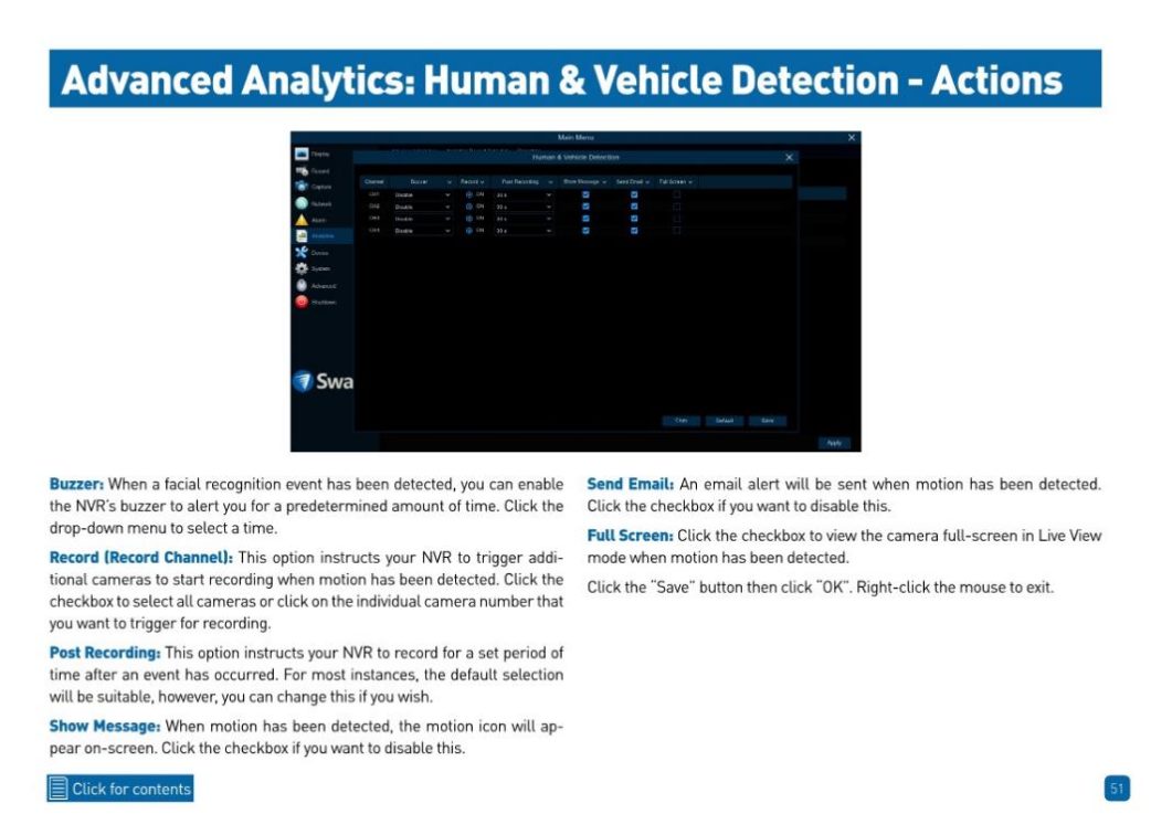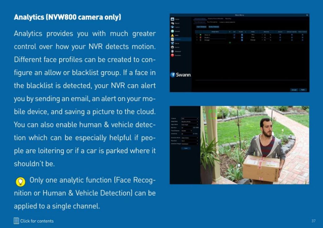 Swann recommends multi-camera wired NVR systems, as these have many additional features that businesses will find valuable, such as smart analytics to be alerted to important activity, such as perimeter intrusion, face recognition, heat mapping, line crossing, vehicle detection and more. The high definition, usually 4K or 6K, image quality of IP NVR surveillance technology allows businesses to see amazing detail live but also to zoom in for close-ups when streaming or when playing back recorded footage. Other product types, such as Powered Wi-Fi Systems and Alarm Systems, can compliment wired NVR systems, for complete security at a business.