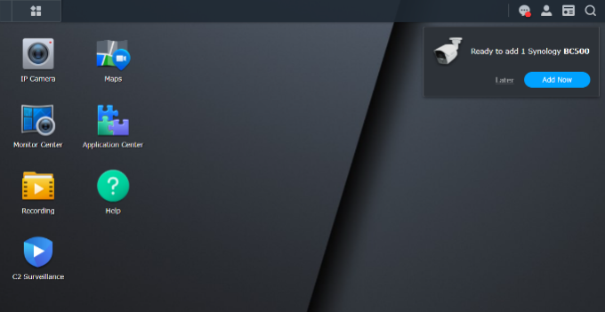 2 has been connected to your network, a pop-up message will appear in the upper-right corner of the Surveillance Station desktop. Click Add Now and