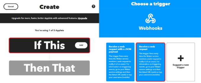 A webhook URL must be properly configured to add a bookmark or display an alert in Monitor Center when a webhook event is triggered.