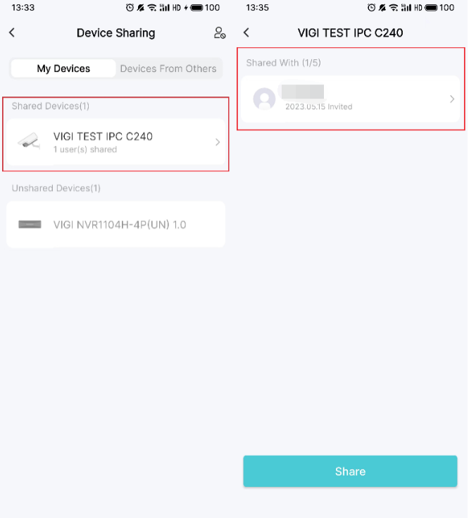With the Device Sharing feature, you can invite your families to manage the VIGI devices together.