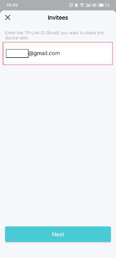 Step 2. Tap Share. Enter the invitee’s TP-Link ID, then tap Next.