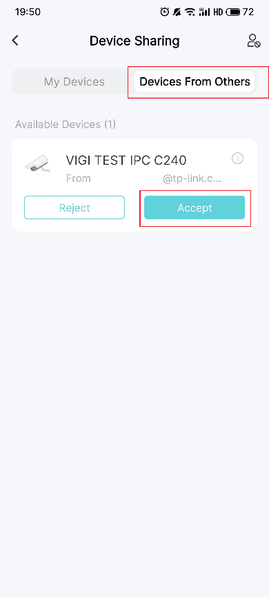 Step 5. Let the invitee log in to the VIGI app, check the invitation under Notifications and tap Accept. After that, the invitee can watch/manage this shared VIGI device.
