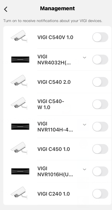 Step 1 Check your camera whether the Notifications is on your VIGI app.