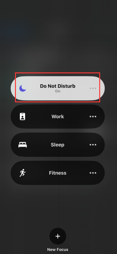 For iOS 15 or later: Open Control Center, tap Focus, then tap the Focus that is on to turn it off.