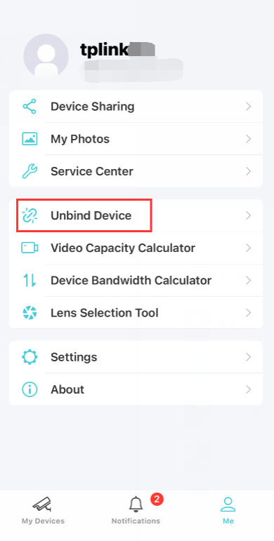 On the Me page, you can tap on Unbind Device to unbind your VIGI devices from your TP-LINK ID.