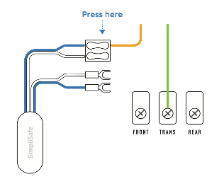 diagram of simplisafe chime connector with doorbell trans wire connected to chime connector