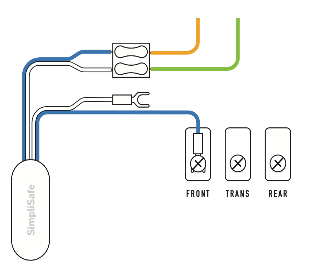 5.Attach the other blue wire from the Chime Connector to the “Front” terminal