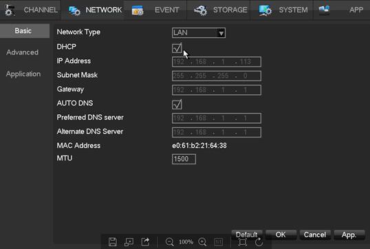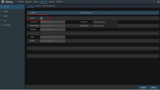2. Set the network of DVR and NVR to DHCP, (enter the system –> Setup –> Network, to find the following page and then check the DHCP option).