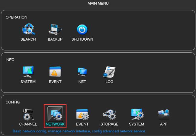 1.Right click mouse, Enter into “MAIN MENU“-“NETWORK“