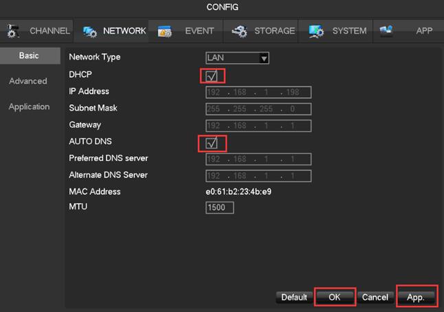 Please select DHCP -AUTO DNS and restart the DVR. If DHCP has been selected but no network,please try not to select DHCP and restart the DVR.Then, please select DHCP and restart the DVR.