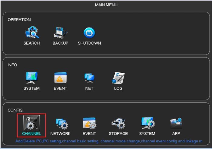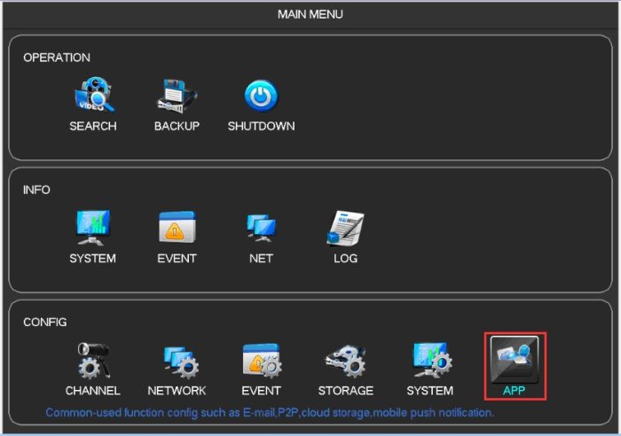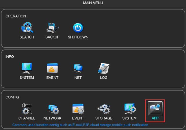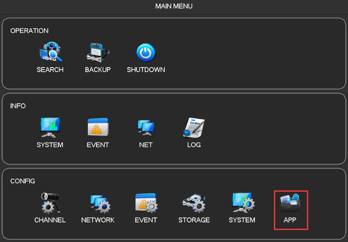 1. DVR operation: Go to “Main Menu” – “APP”: