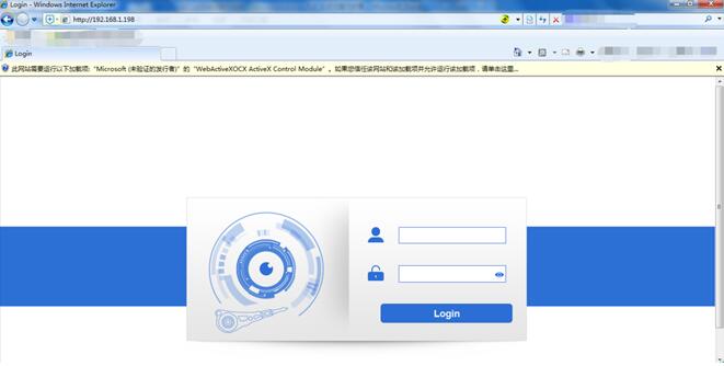 1)Open the computer IE browser and enter the IP address of DVR device in the address bar: 192.168.1.198. Load the installation control according to the prompt.