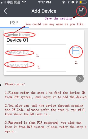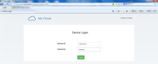 3. Please remember the Device ID and password, the P2P service URL is www.vssweb.net