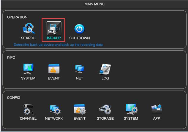 1. 2.Enter “MAIN MENU“-select “BACKUP“