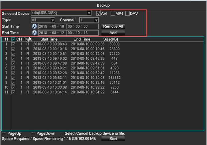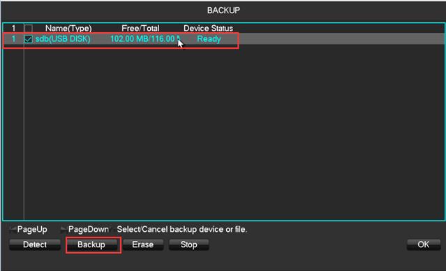 6. Note : Confirm the space for the USB disk if it is enough to save the backup video .