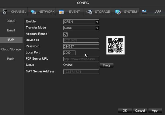 2. Enter into “MAIN MENU“-“APP“-“P2P“