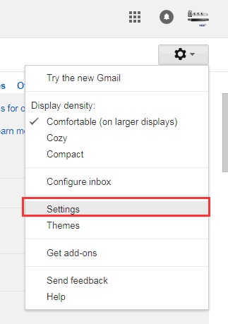 1. Log in your Gmail account, click Settings.