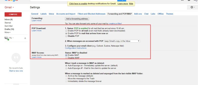 Enable Gmail POP3 and IAMP service: