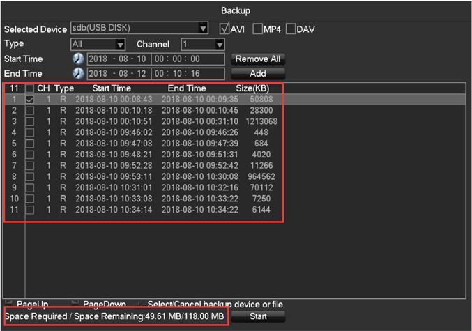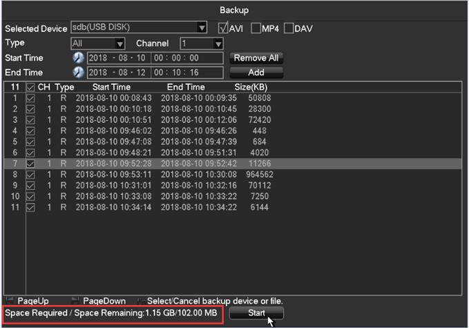 1. 7. If the space is insufficient, please reduce backup video, click “Start“‘: