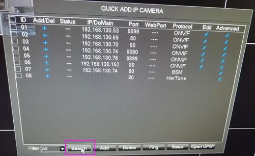 3. Click [Search] to find the IP address of IPC, double click to add, and automatically display the video of this IPC.