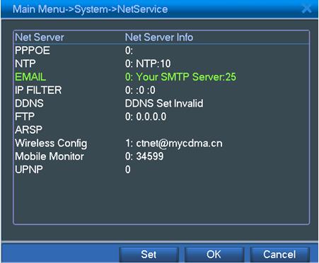 1) Go to Main Menu->System->NetService to double click “EMAIL”,see below picture: