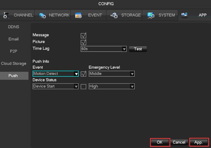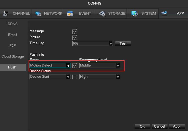 2. Go to [APP] – [Push], select Motion Detection to turn it on.