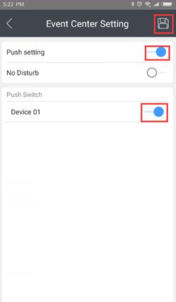 6. Enter the settings interface, enable the message push, and select the device which need to receive the push. Finally click Save .
