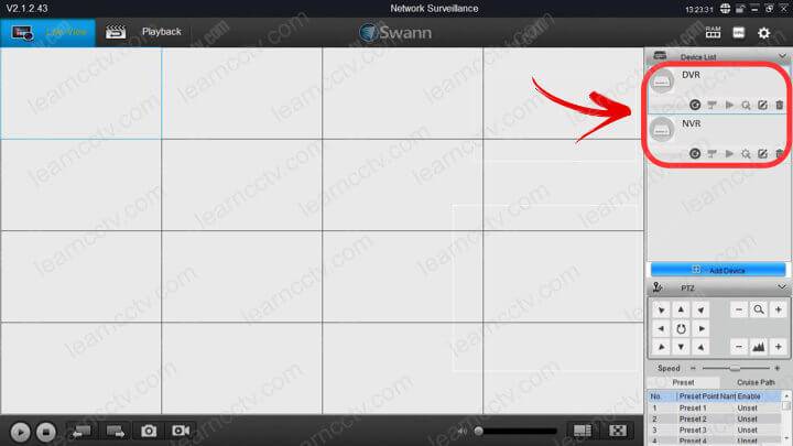 If the software can’t locate the DVR/NVR, click “Add Device“.