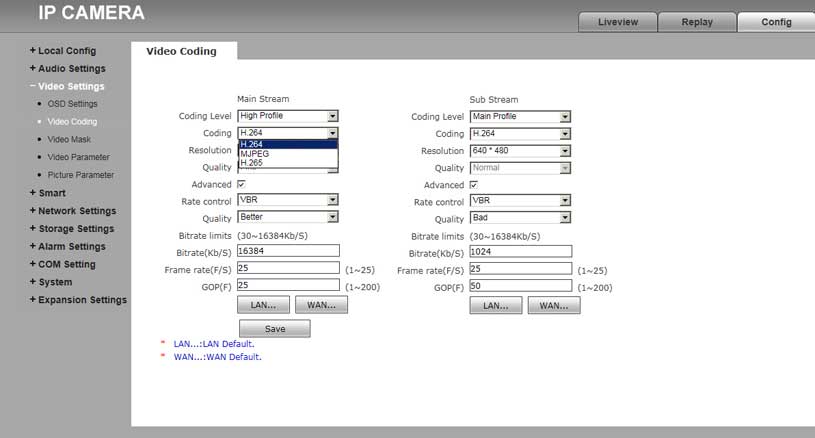 | BP / HP / MP | At the same bit rate, the higher the coding complexity, the higher the image quality, but the higher the network bandwidth requirements. If your camera supports H.264 video encoding, the high , medium and low encoding complexity corresponds to H.264 HighProfile, MainProfile and BaselineProfile respectively |