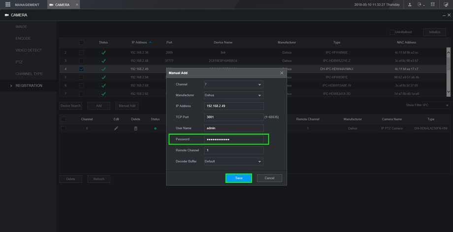 The second method is used if there’s an existing camera and it’s password was changed. You will use device search to locate the camera and then go to manual add to change the password it’s being added with